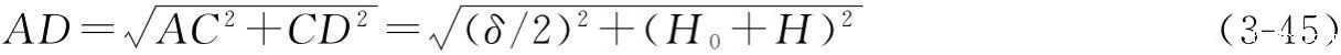 式中参数和本章前面介绍相同,δ、H0、H都可在设计时获得数据,在面对卷筒主视平面,所求长度为AC在图3-55(b)平面的距离: